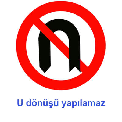Dönmenin yasak olduğunu gösterir. U dönüşü yapılmaması gereken yerden dönen sürücüler trafiği tehlikeye atmaktadır. U dönüşü ihlalinin cezası ise 2023 yıolında 436 TL dir.